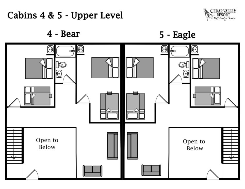 - The Bear & Eagle are in one building but are private cabins with identical layouts
