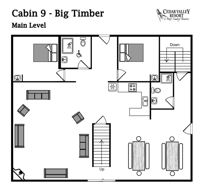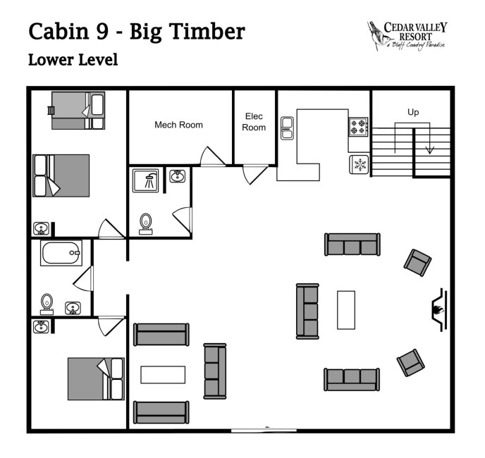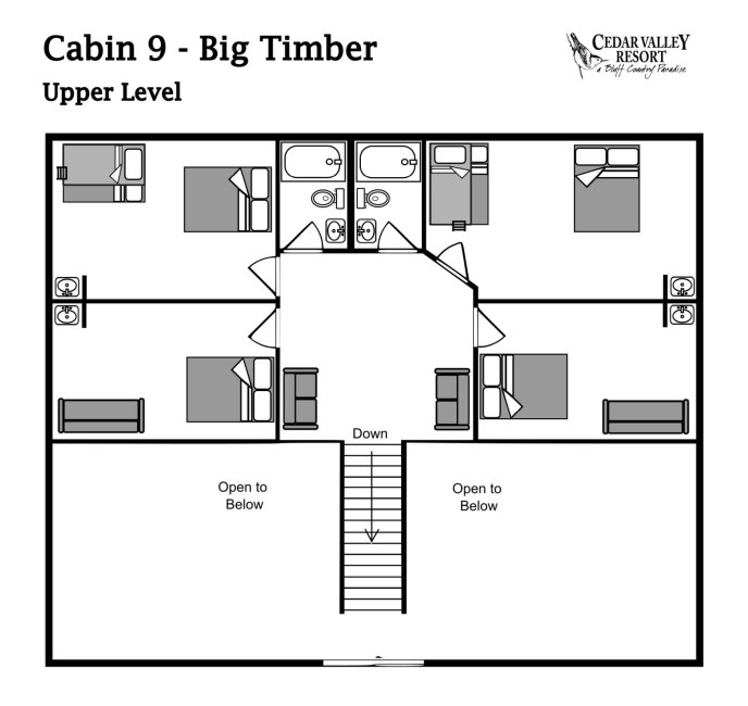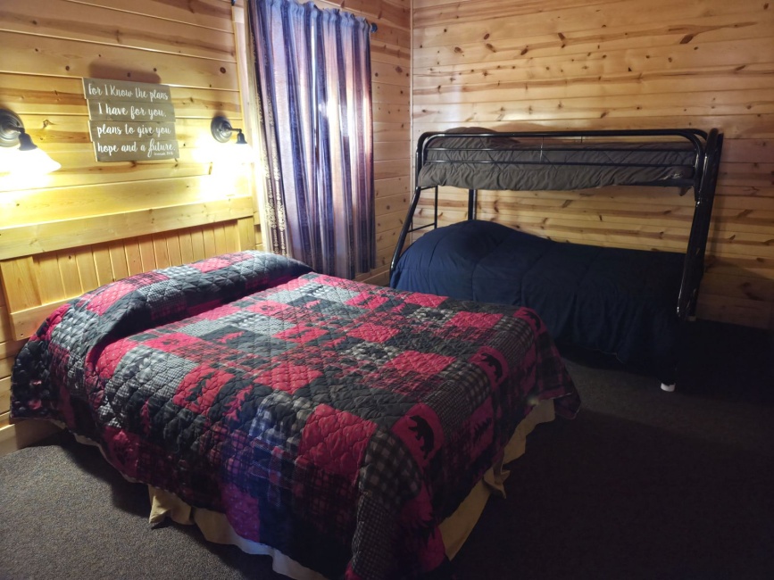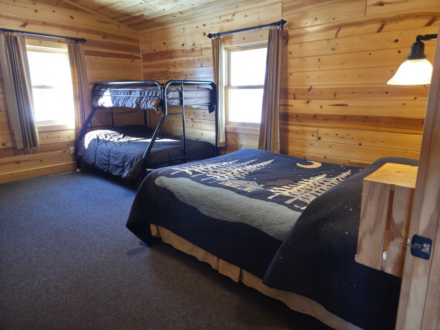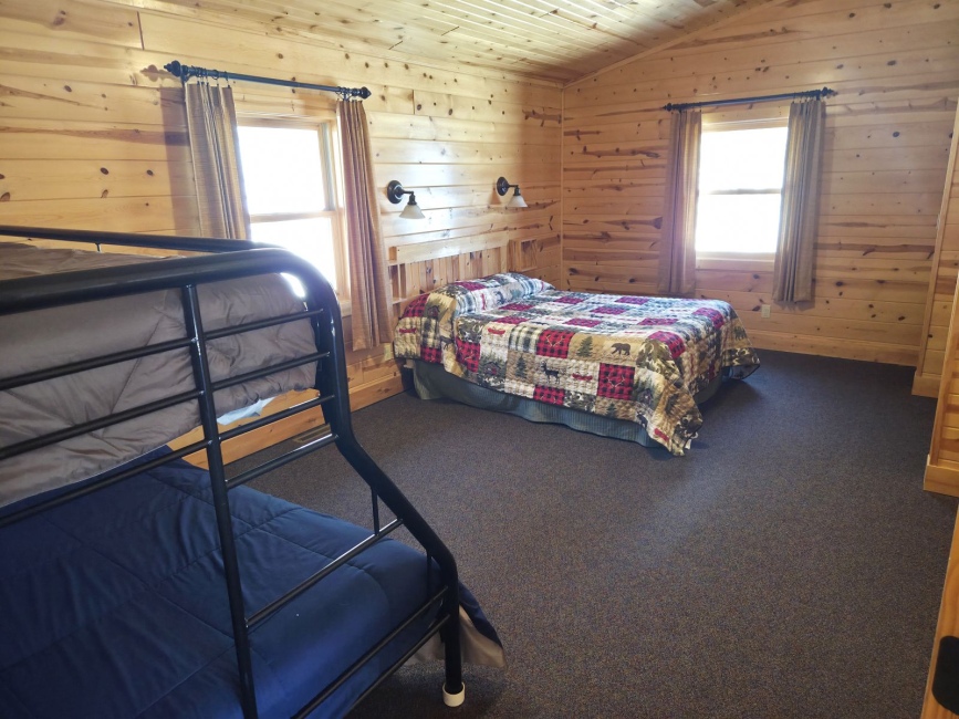 • 3 bedrooms have 1 queen bed and 1 bunk with a twin top and double bottom