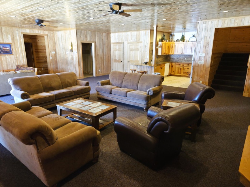 • Rustic 10′ x 50 ‘ covered deck off main level kitchen