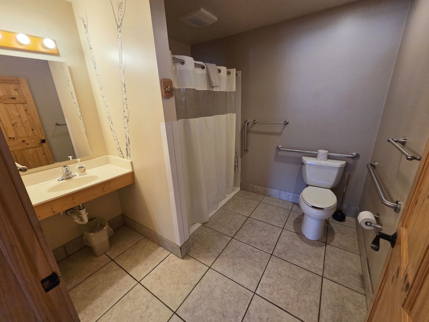 - Handicap accessible (including a roll-in shower and grab bars)