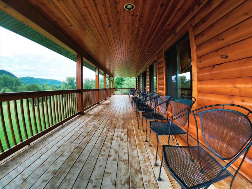 - Rustic 10′ x 50 ‘ covered deck off main level kitchen