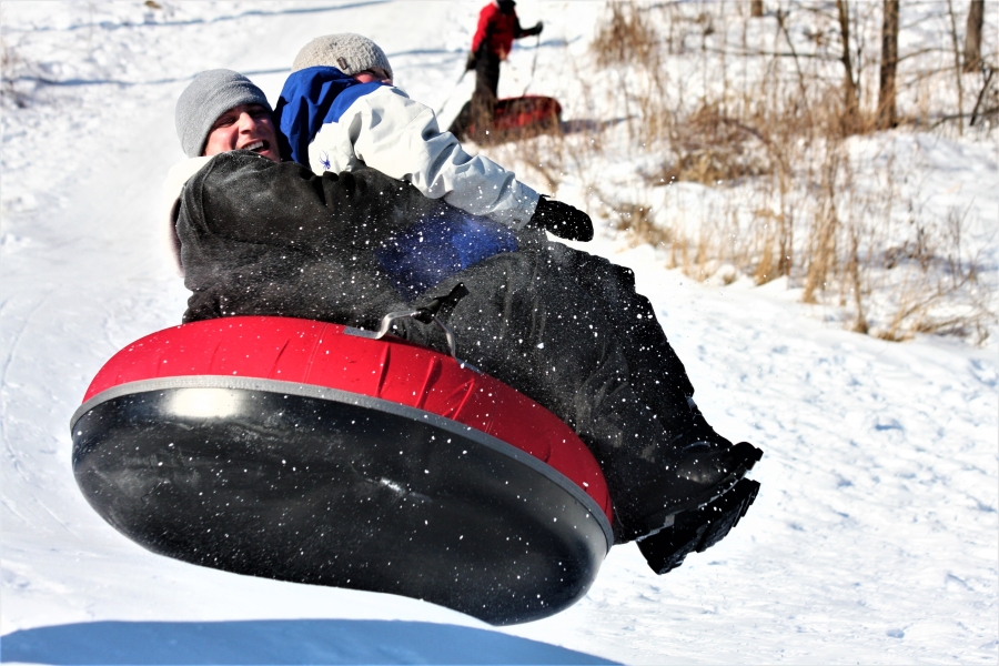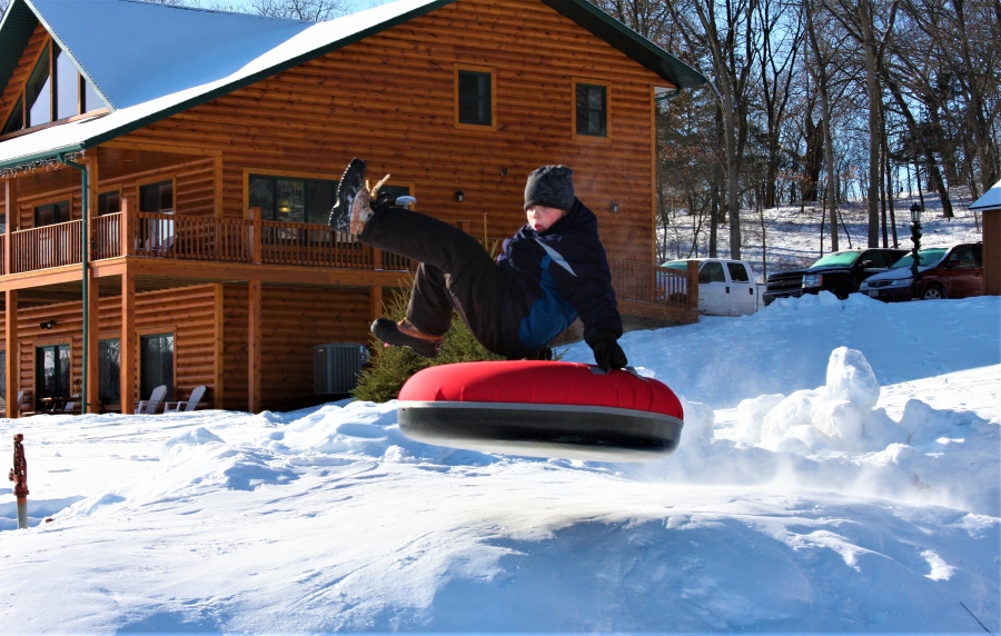 Try out our newly groomed snowshoe paths through the bluffs, located just 1 mile from resort! Or give cross country skiing a try; the DNR grooms the Root River State Bike Trail for skiing throughout the winter. Snow tubing on our hill is free for our guests.